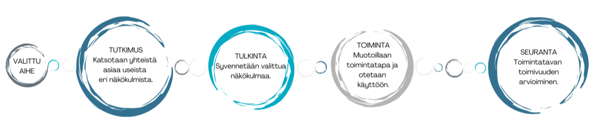 Prosessi etenee mukaillen Minna Koskelon tulevaisuusmuotoilun kaavaa, jossa hyödynnetään luovia ja toiminnallisia menetelmiä sekä palvelumuotoilua. Lähtökohtana on asia, jota yhteisö haluaa omassa toiminnassaan parantaa tulevaisuudessa. Prosessi sisältää vähintään neljä (4) yhteisön toiminnallista tapaamista. Tapaamisten kestot ovat noin 1,5 - 2 h. Prosessin tarkoituksena on muotoilla yhteisön toimintatapaa, kehittää jo olemassa olevaa tai luoda uutta.